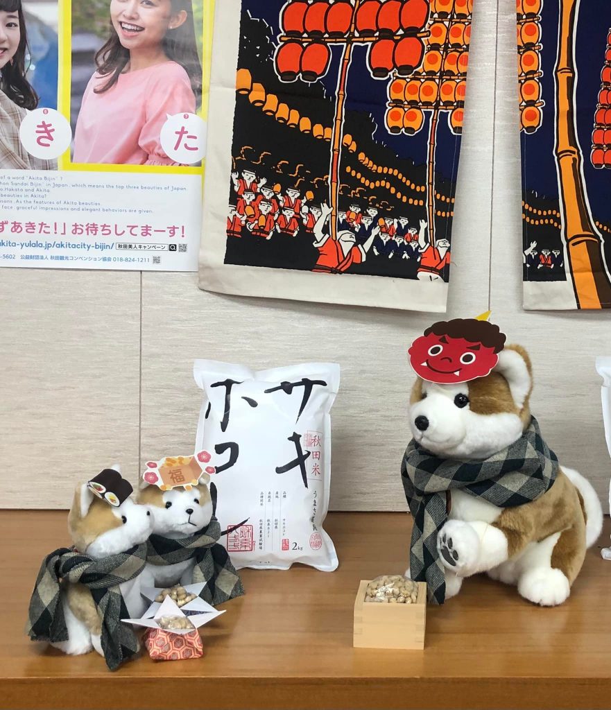 バックに見えるのが秋田犬マサルの節分ポーズです!【鬼は外福は内】【福は内福は内】