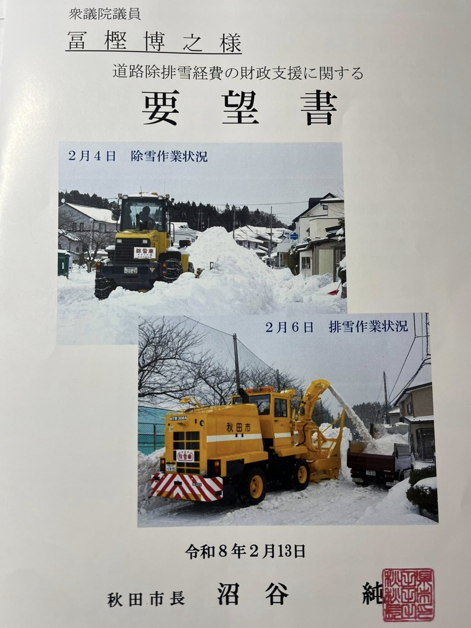 除雪対策予算の要望