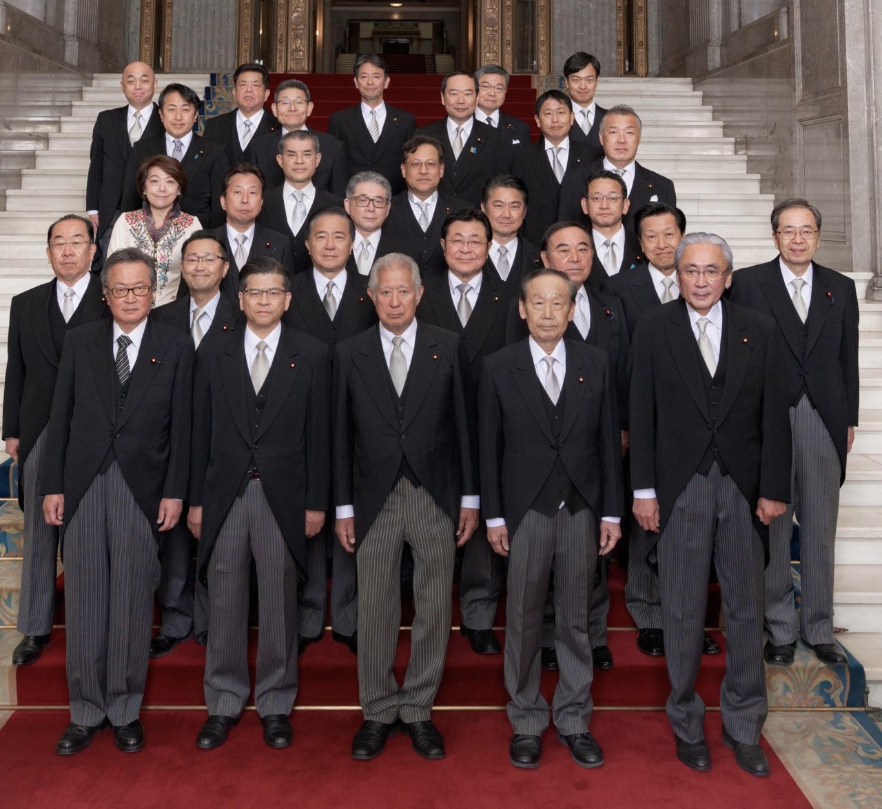 写真は、衆議院議長・副議長をはじめ、衆議院の常任委員長および特別委員長が天皇陛下をお迎えし、お見送りした後、国会正門前にて森議長、石井副議長を囲んで撮影した一枚です。私も国土交通委員長として参加してます。